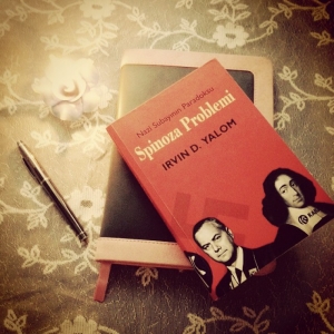 ... ço-u ara-t-rmac- Spinoza’y- mülayim ve kibar biri olarak görüyor, baziları da hayatın- H-ristiyan azizlerinkiyle ya da hatta -sa’nınkiyle k-yAslıyordu. Ben de bu nedenle Spinoza’nın içsel yaşamına dair bir roman yazmaya karar verdim. Kişisel uzmanl---m bu noktada Spinoza’nın hikâyesini anlatmama yardımc- olabilirdi. Ne de olsa, o da bir insandı ve beni ve yıllar boyunca üzerinde çalışt---m birçok hastay- rahats-z eden temel insani çelişkilerle mücadele etmiş olmalıydı...